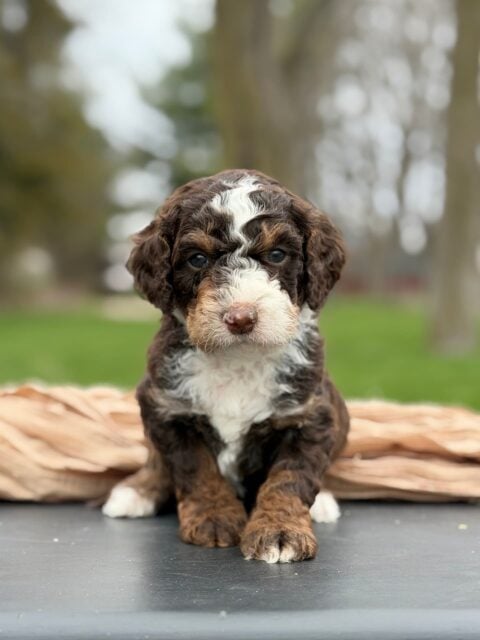 Our Bernedoodle and Goldendoodle puppies are looking for a family in Indianapolis. You can drop by for a visit or video call us with FaceTime see our farm and your future puppy.