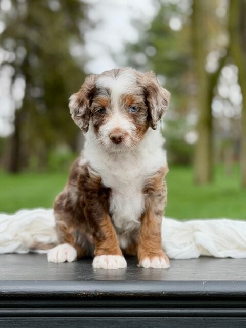 We can’t thank you enough Posey is so confident and loves everyone she meets and we know it’s because of the great start she had from you and your family a world of difference from our other bernedoodle who was scared and very nervous . Posey is so smart and picked up the bell method to go potty outside with in the first few days.